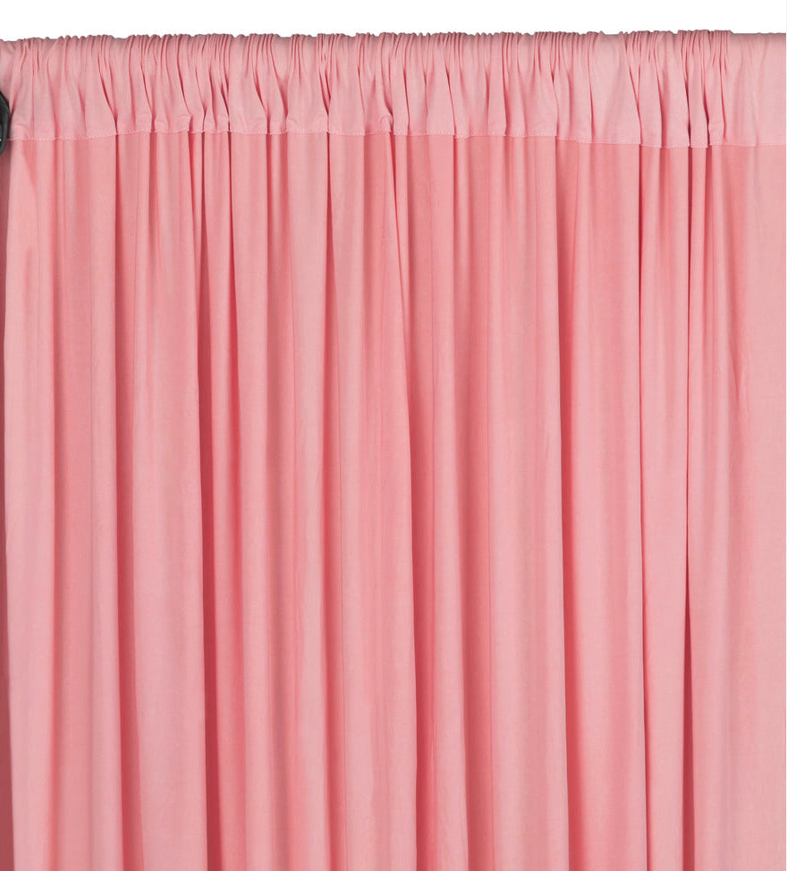 Each 10′ section requires 2-4drapes depending on desired fullness.
